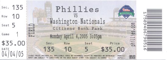 Washington Nationals Official WebsiteMy Opening Day Ticket (April 4th, 2005 in Philadelphia)
